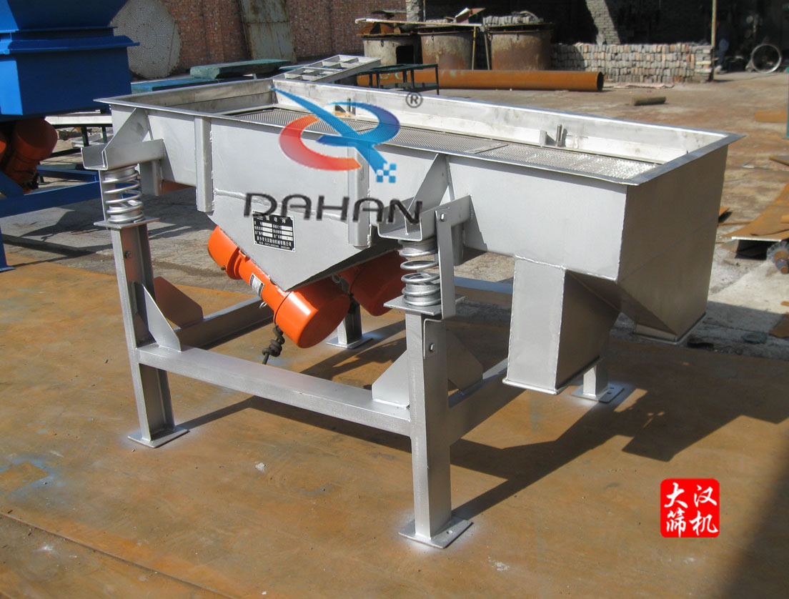 “大漢牌”DZSF-512-1S食品直線振動(dòng)篩篩面寬為50mm,長1200mm,一層篩網(wǎng)二出口,與物料接觸部材質(zhì)以及直線篩篩網(wǎng)均為304不銹鋼,內(nèi)部打磨拋光,干凈衛(wèi)生,支架以及電機(jī)板、導(dǎo)力板為Q235碳鋼材質(zhì),噴防銹漆。