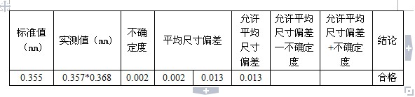 允許平均尺寸偏差的值不確定度<平均尺寸偏差的值<允許平均尺寸偏差的值+不確定度(待定)