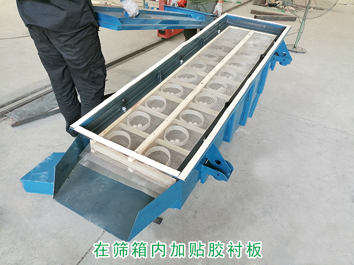 可在篩箱的側板、入料給料口、排料口內加貼橡膠襯板,可以有效地抑制篩分機側板的高頻振動,減少輻射噪聲;在篩箱結構的設計中,要考慮到篩箱的剛度,采用合適的側板剛度來減小振動,降低中低頻噪聲波。